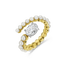 A study in duality — where modern form meets timeless grace. This wrap ring intertwines strands of polished 18K yellow gold beads and luminous pearls, united by an oval-cut diamond centerpiece in white gold. Sculptural and fluid, it redefines the balance between softness and strength. A statement of individuality, handcrafted to be worn as both fine art and fine jewelry.